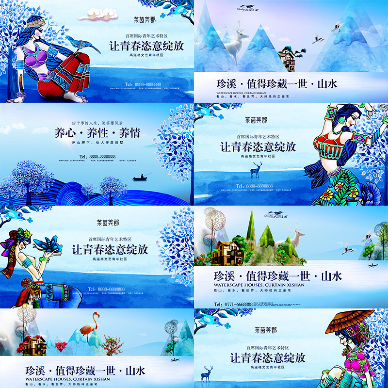 高端手繪園林別墅房地產(chǎn)戶外橫幅廣告宣傳海報(bào)PSD設(shè)計(jì)素材圖