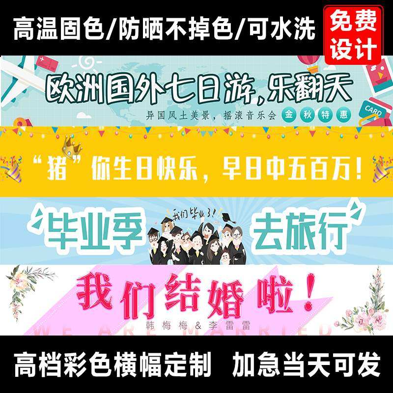 橫幅生日定制橫幅廣告條幅定做結(jié)婚拉條微商旅游訂做免費(fèi)設(shè)計(jì)圖案