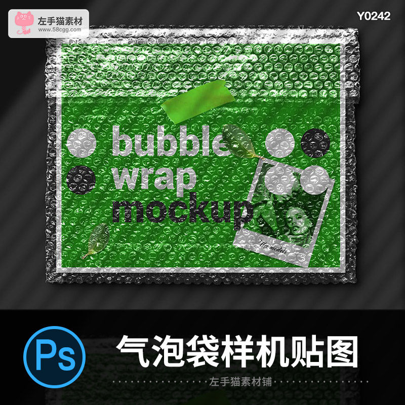 氣泡袋透明泡泡膜快遞打包包裝樣機(jī)PSD智能貼圖分層設(shè)計(jì)素材