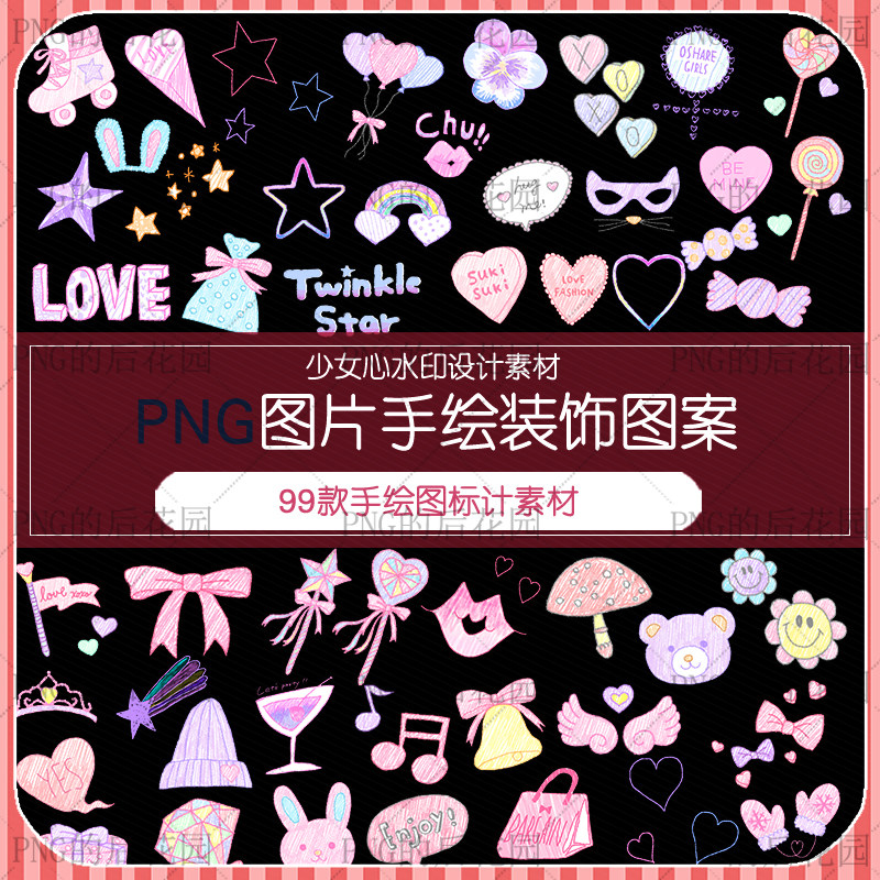 夢幻卡通少女心手繪涂鴉 照片圖片 手帳 水印裝飾美化png免扣素材