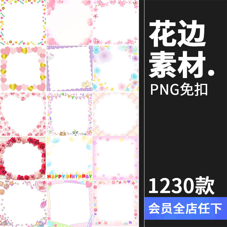 卡通花邊裝飾鮮花邊框網(wǎng)店裝修圖片美化照片PNG免摳透明PS素材圖