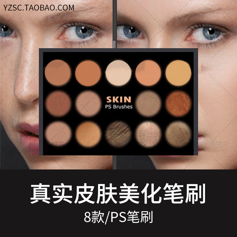 真實(shí)皮膚紋理照片美化效果PS筆刷預(yù)設(shè) 影樓后期設(shè)計(jì)素材
