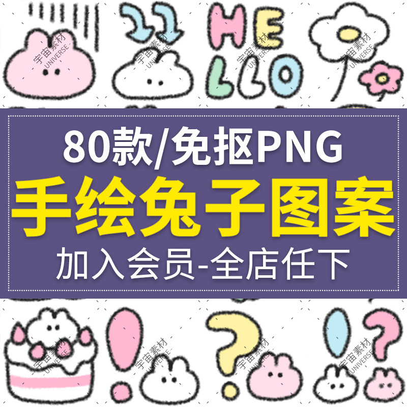 卡通可愛手繪簡約兔子圖案免摳PNG圖片 照片手賬美化設計PS素材新