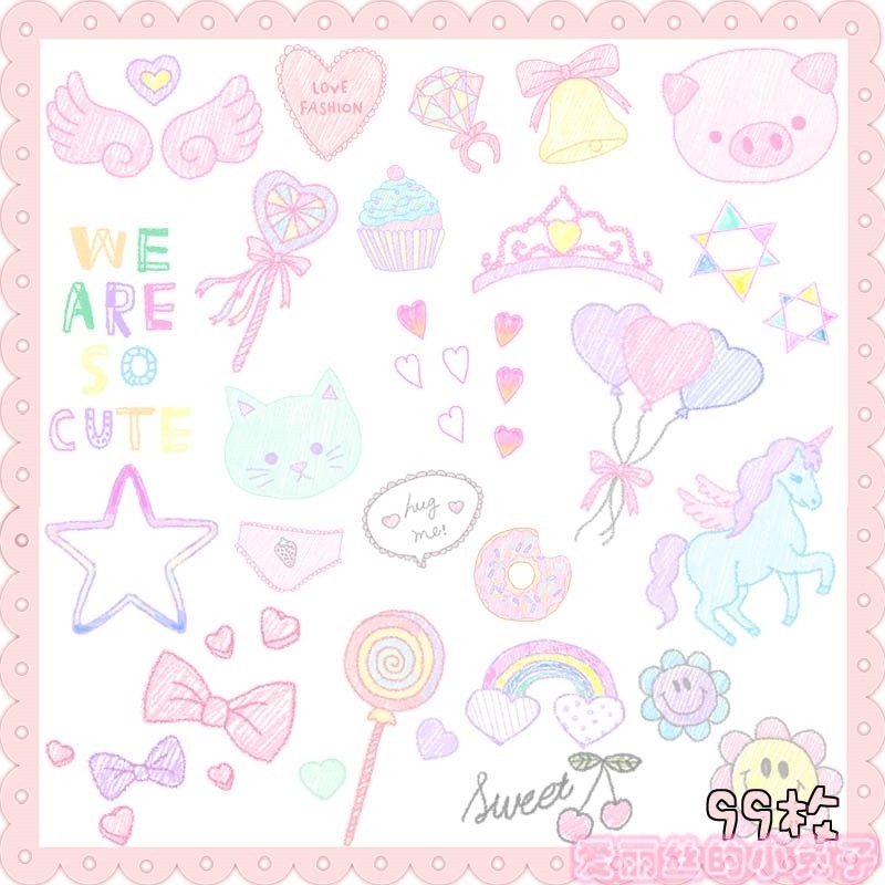 可愛手繪娃娃 寶貝描述商品圖片裝飾 照片周邊 水印美化素材包S08