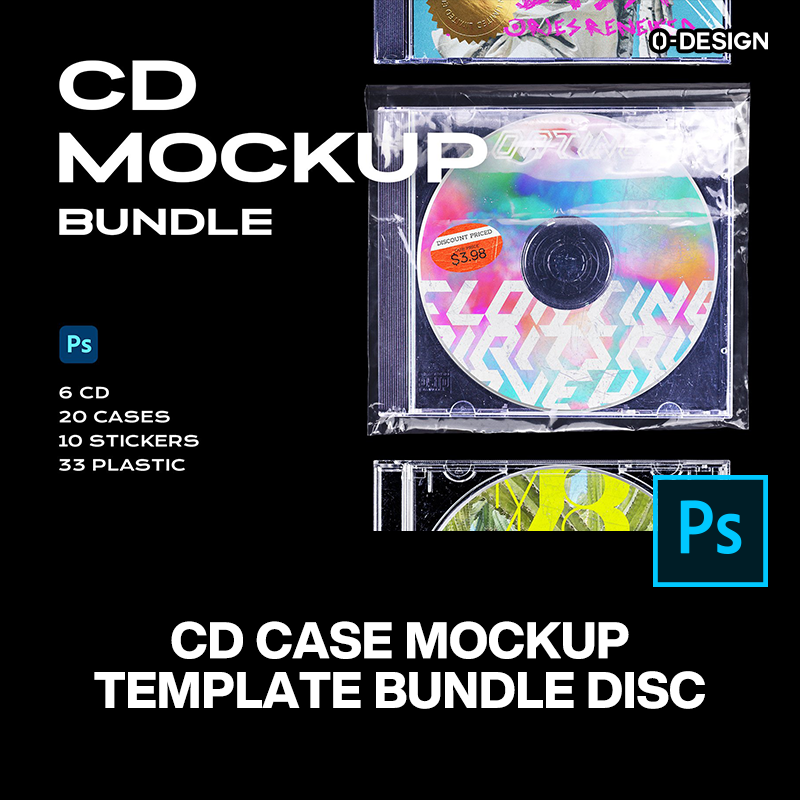 復(fù)古潮流CD唱片光盤透明薄膜包裝貼紙封面設(shè)計ps樣機(jī)素材展示模板