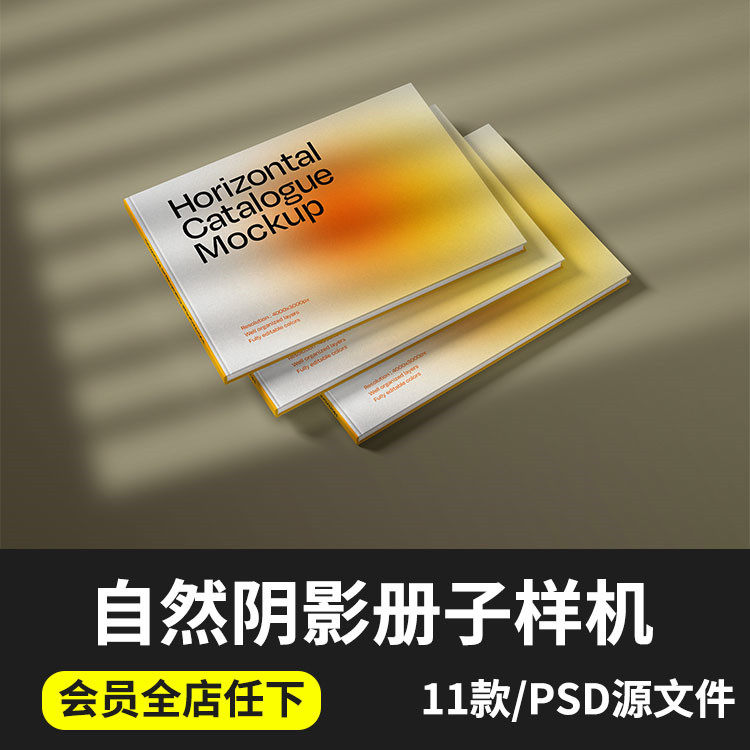橫向畫冊手冊書籍雜志封面自然陰影效果內(nèi)頁設(shè)計PSD樣機(jī)貼圖素材