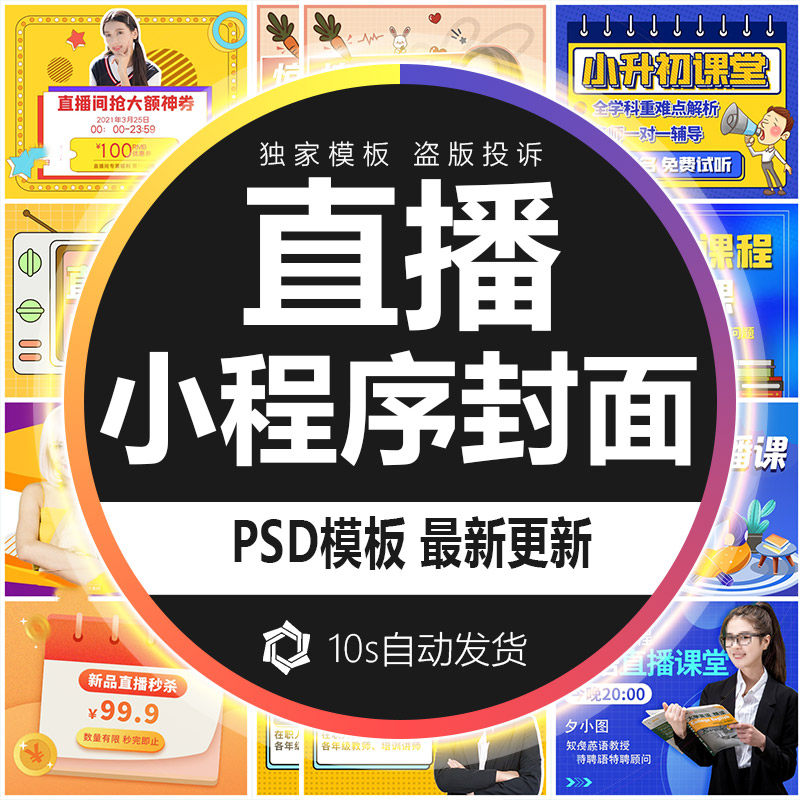 直播秒殺宣傳促銷小程序封面公眾號配圖海報插畫背景PSD設(shè)計素材