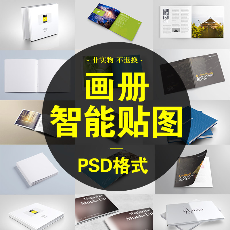 正方形豎形樣機(jī)智能貼圖畫冊書籍裝幀書本封面設(shè)計冊子PS分層素材