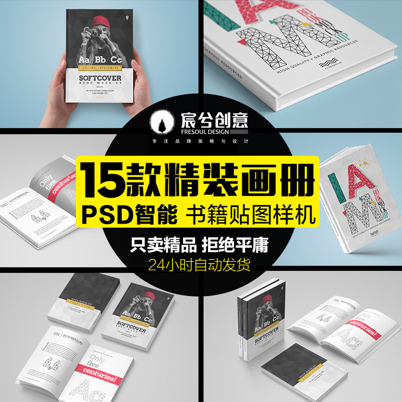 NO.1精裝硬殼書籍智能貼圖樣機模板畫冊封面內頁展示psd設計素材