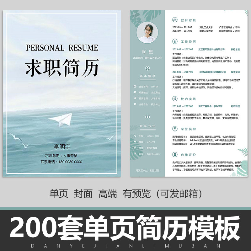 單頁簡歷模板求職電子版學生word封面高端應聘畢業(yè)生簡約大氣設計