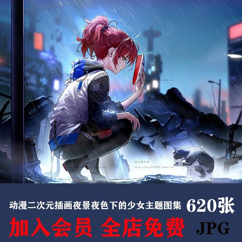 D044動漫二次元插畫夜景夜色下的少女主題圖集原畫壁紙CG圖片素材