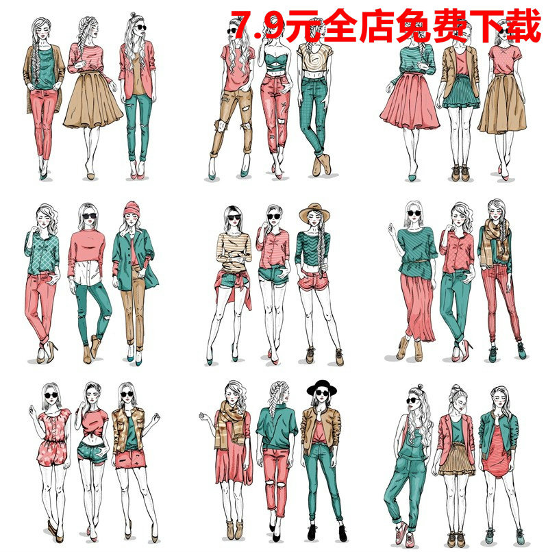 時(shí)尚插畫手繪線稿女孩人物模特服裝形象設(shè)計(jì)服飾矢量圖片素材