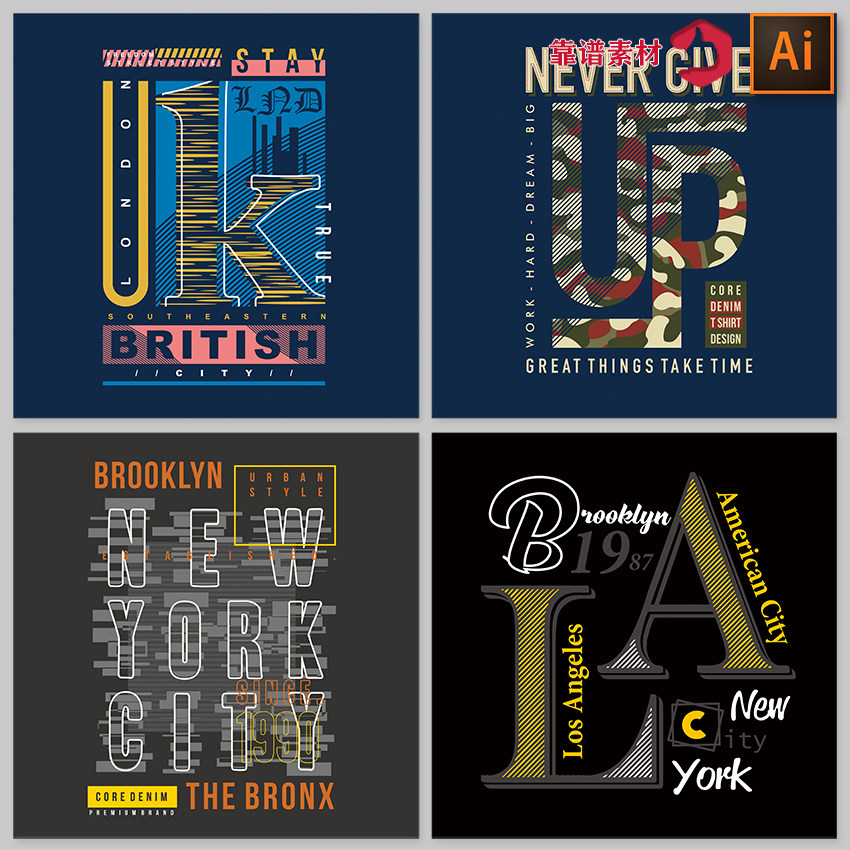 時(shí)尚創(chuàng)意潮流英文字母組合服飾服裝印花圖案裝飾畫AI矢量設(shè)計(jì)素材
