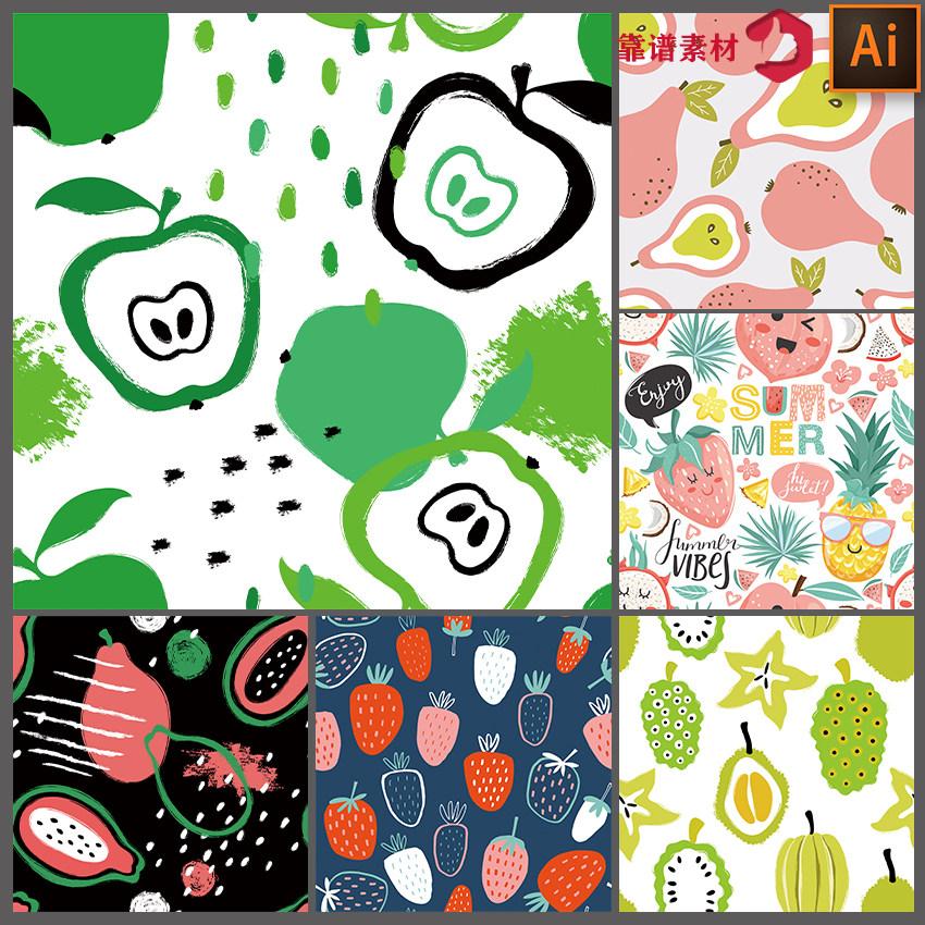 手繪涂鴉個(gè)性水果圖案服飾家居墻紙地毯面料印花圖案設(shè)計(jì)素材