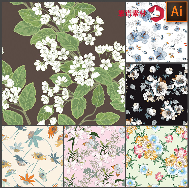 唯美小清新鮮花植物葉子碎花墻紙服飾地毯印花圖案設(shè)計(jì)素材