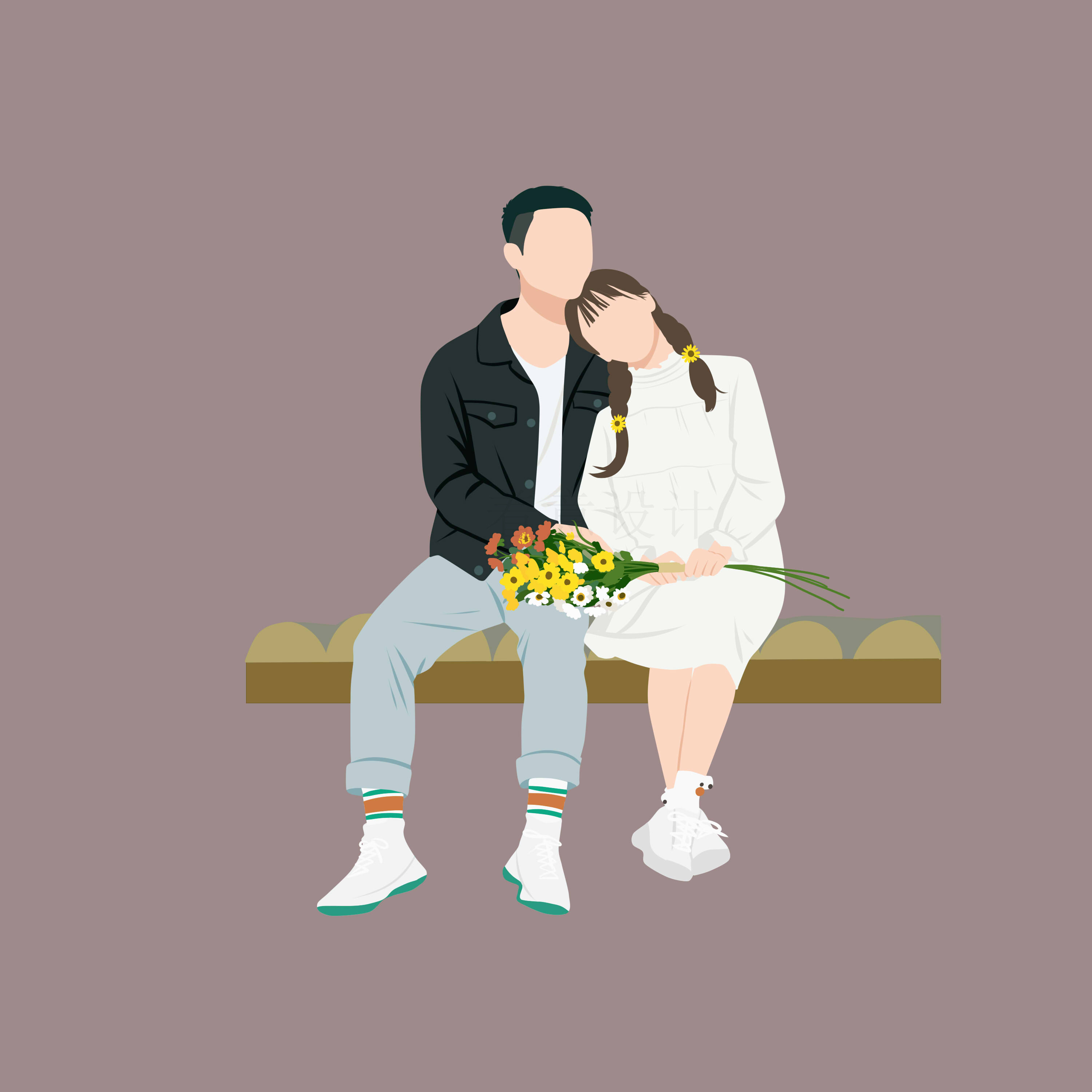 手繪頭像卡通情侶簡筆畫設(shè)計漫畫人物繪畫壁紙定制訂作似顏繪無臉