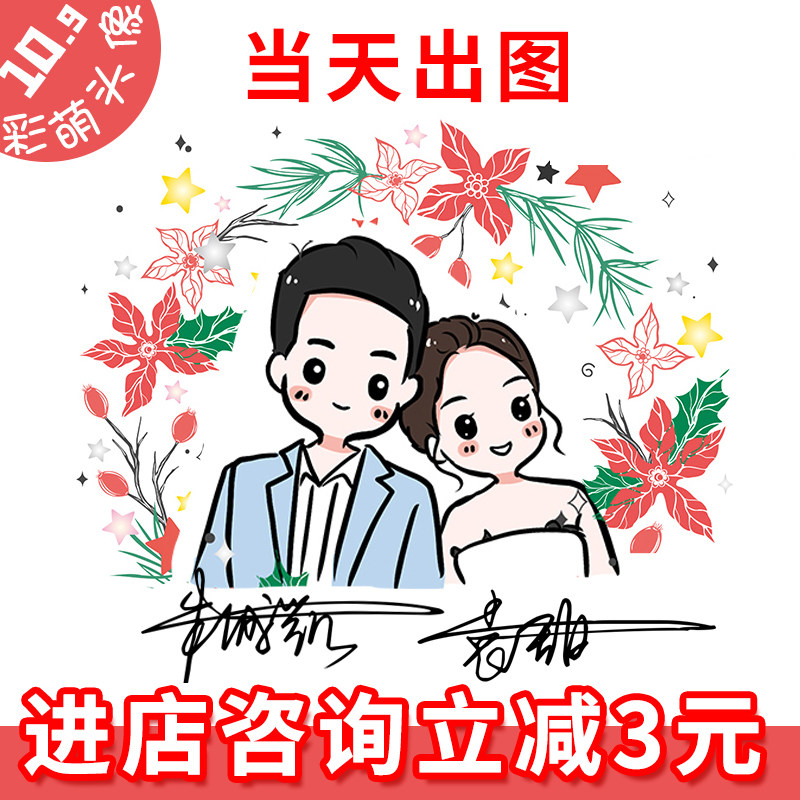 q版頭像設(shè)計(jì)定制作照片轉(zhuǎn)手繪卡通人物形象漫畫(huà)插畫(huà)情侶結(jié)婚禮
