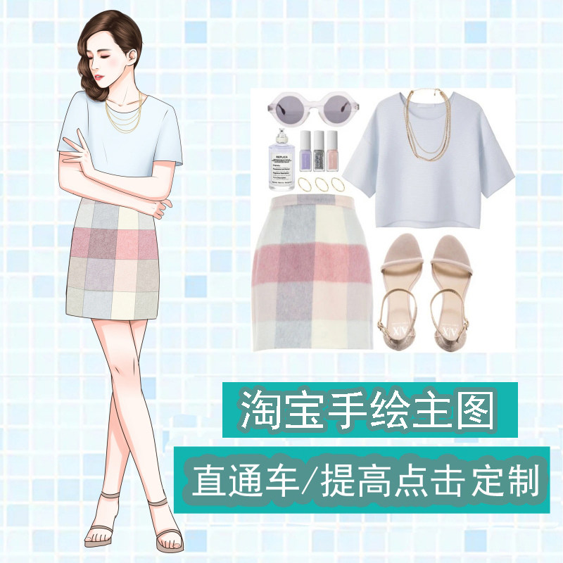 淘寶手繪主圖漫畫(huà)時(shí)裝女服裝人物設(shè)計(jì)模特照片PS定制作代畫(huà)款式圖