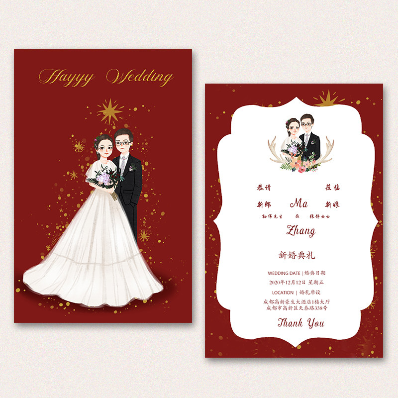 手繪婚禮請柬人物頭像漫畫定制高端婚紗照手繪邀請函請?zhí)瀹嬙O計