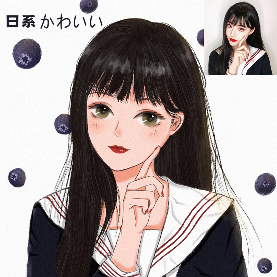 網(wǎng)紅日系手繪頭像漫畫富江插畫設計卡通人物真人照片定制作情侶