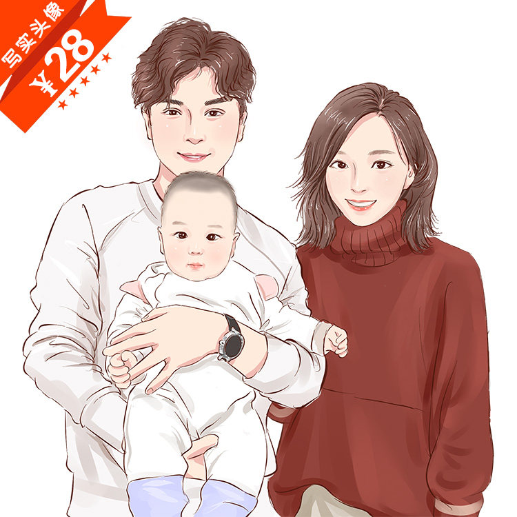 寶寶畫像親子頭像全家福照片轉手繪人物卡通漫畫設計定制創(chuàng)意禮品