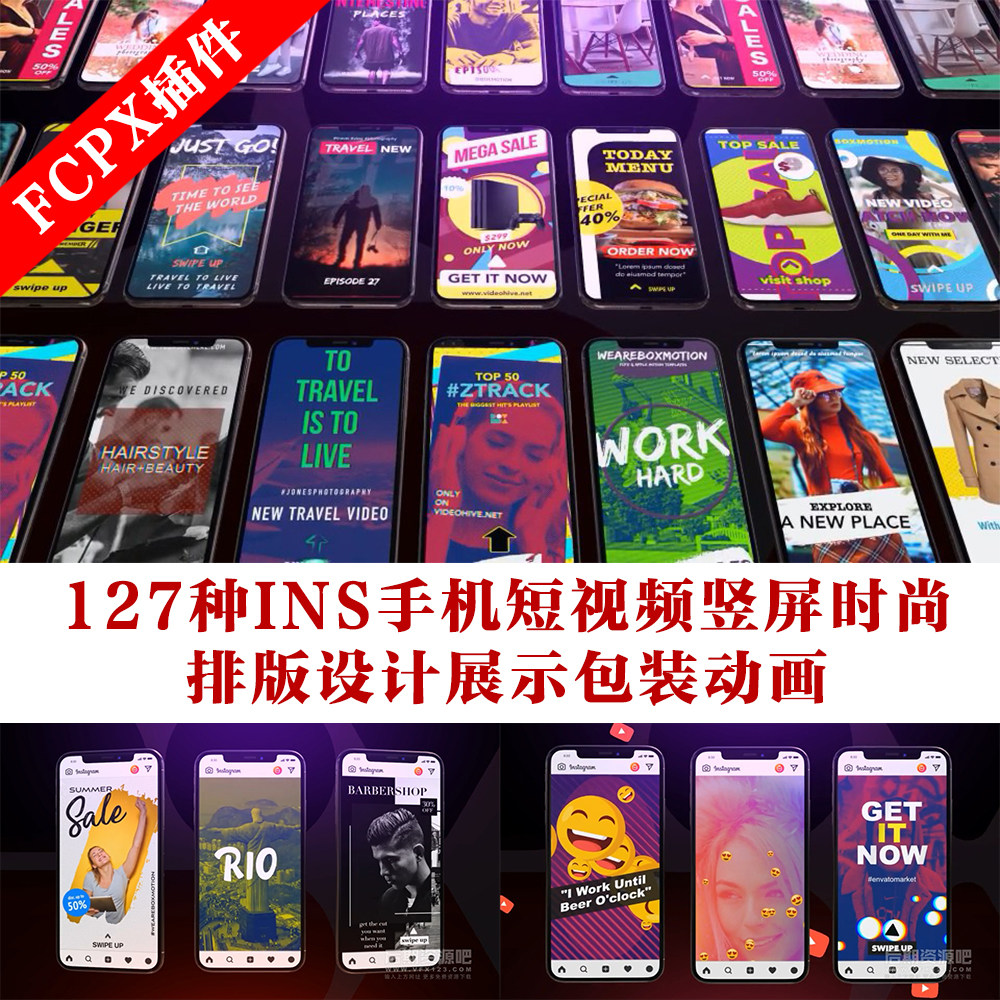 fcpx插件 127種INS手機短視頻豎屏時尚沛設計展示包裝動畫