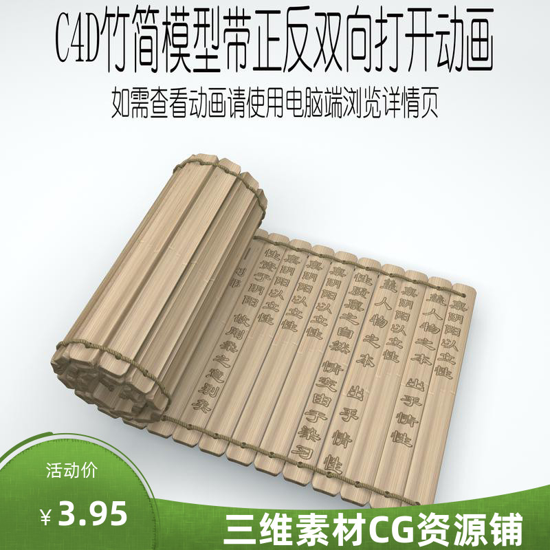 C4D竹簡模型C4D廣告素材C4D動畫模型C4D設計素材C4D竹編扁模型