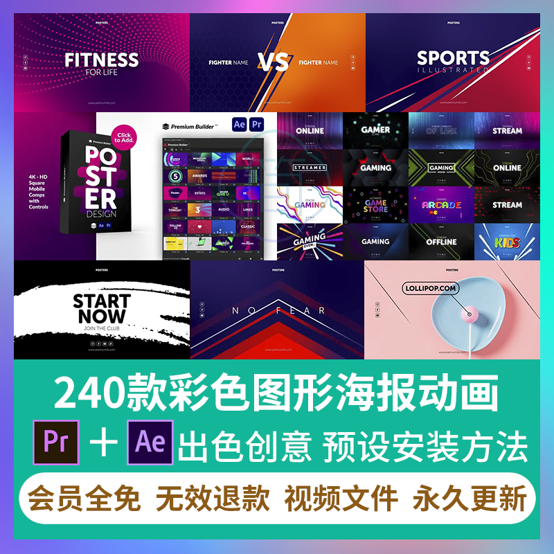 PR/AE模板240款時尚彩色圖形文字標題沛廣告海報設計宣傳動畫
