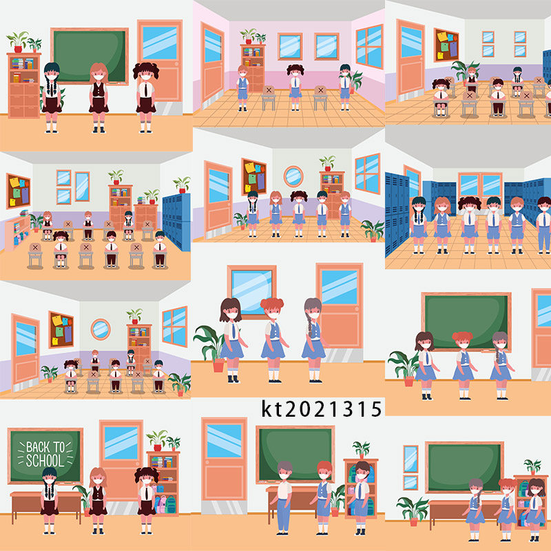 教室兒童學生幼兒園場景元素插畫AI/an/flash/mg動畫矢量設計素材