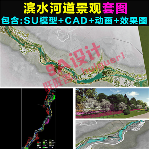 濱水河道景觀湖濱大道園林方案設計公園CADSU模型sketchup動畫