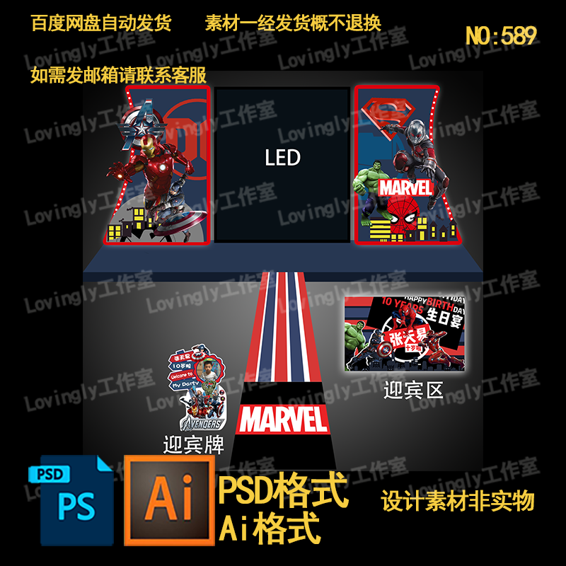 復仇者聯(lián)盟漫威動畫主題寶寶宴氣球生日背景墻板設計稿素材效果圖