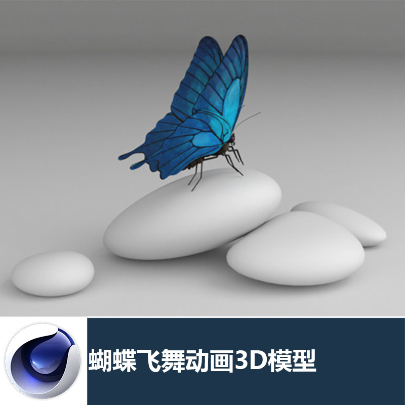 C4D蝴蝶昆蟲飛舞飛行動畫帶材質貼圖設計參考三維模型素材_641