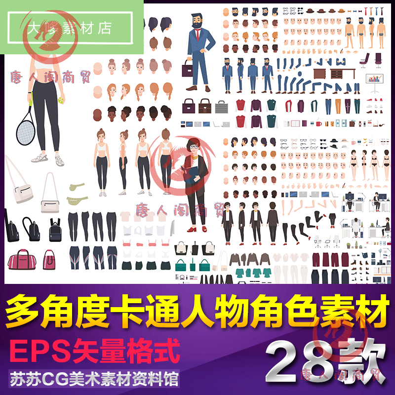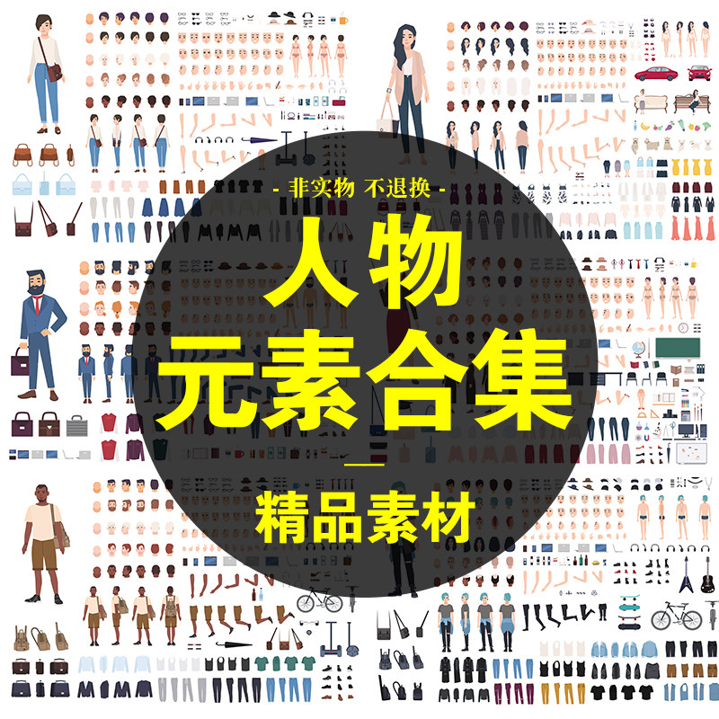 卡通扁平化男人女人老人人物肢體動(dòng)作動(dòng)畫ui背景元素設(shè)計(jì)矢量素材