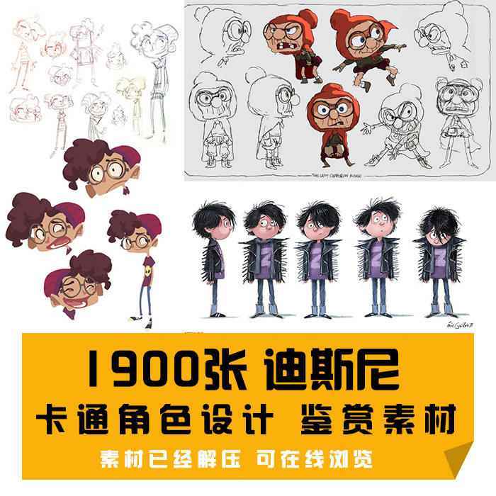 插畫素材迪士尼動畫角色設計 Q版卡通情緒人物三視圖運動規(guī)律線稿