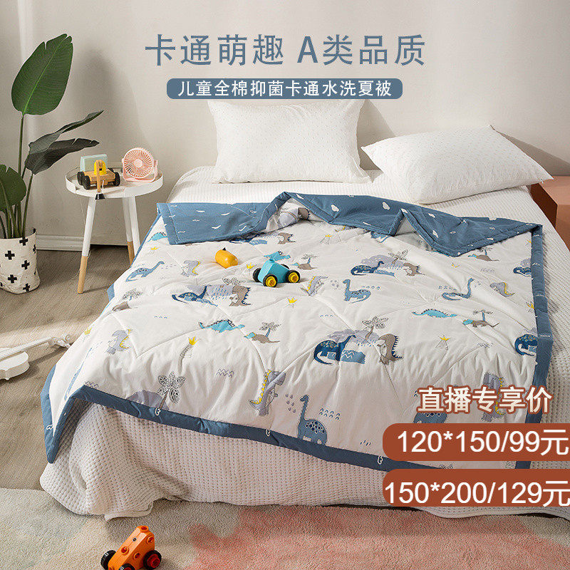 K姐 兒童全棉A類抑菌卡通水洗夏被 兩色選清爽親膚舒適床上用品