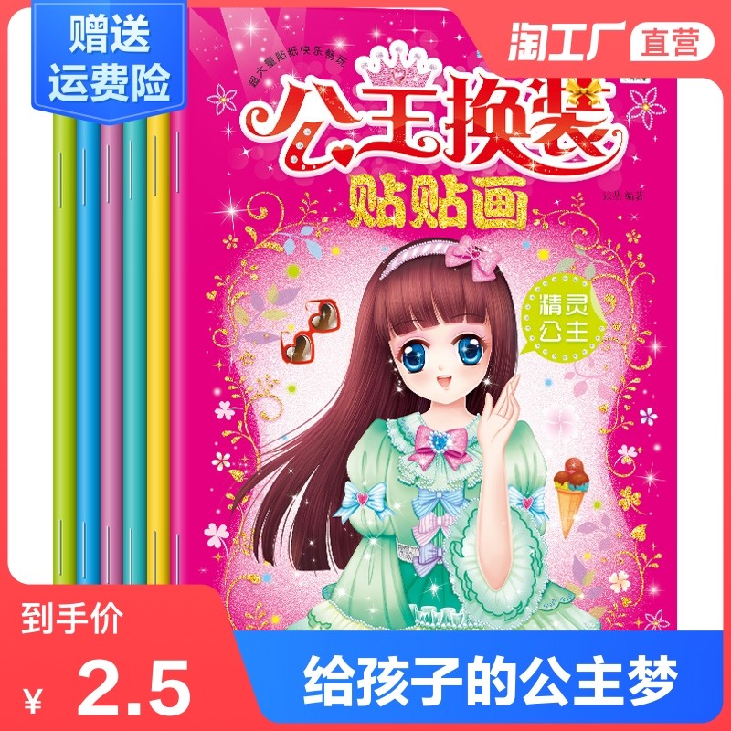 卡通公主換裝貼紙書女孩趣味換裝貼畫書2-6歲3兒童動腦益智力玩具