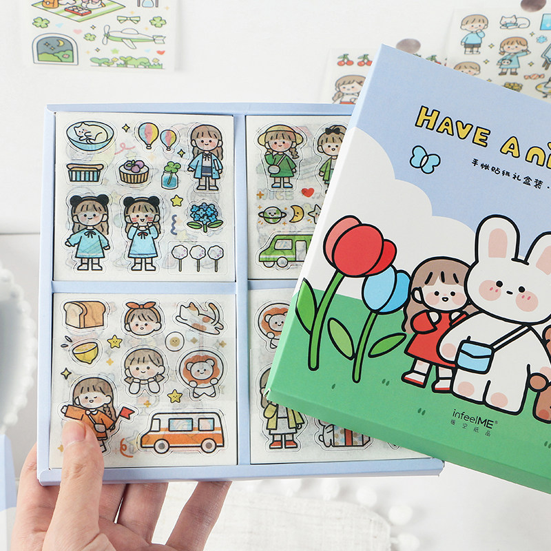 100張手帳貼紙?zhí)籽b可愛(ài)人物手賬貼紙裝飾小圖案一套卡通少女心手賬本貼紙保溫杯子頭盔水壺手機(jī)水杯diy小貼畫(huà)