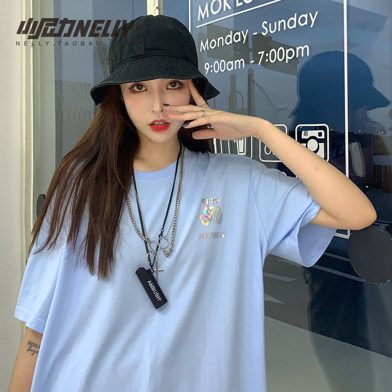 小熊bf風(fēng)韓版ins卡通印花寬松復(fù)古學(xué)生oversize情侶短袖t恤男女潮