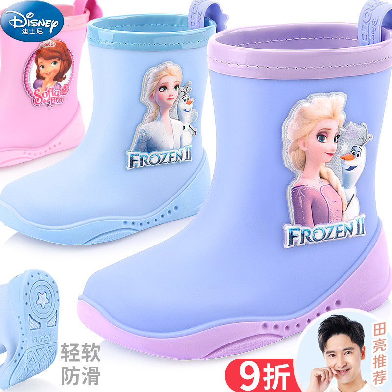 迪士尼兒童雨鞋冰雪奇緣公主女童小學(xué)生防滑中筒輕便卡通寶寶雨靴