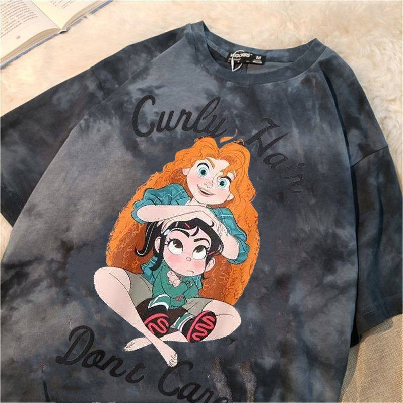 美式潮牌扎染卡通短袖T恤夏季新款情侶裝寬松百搭國潮流學(xué)生上衣