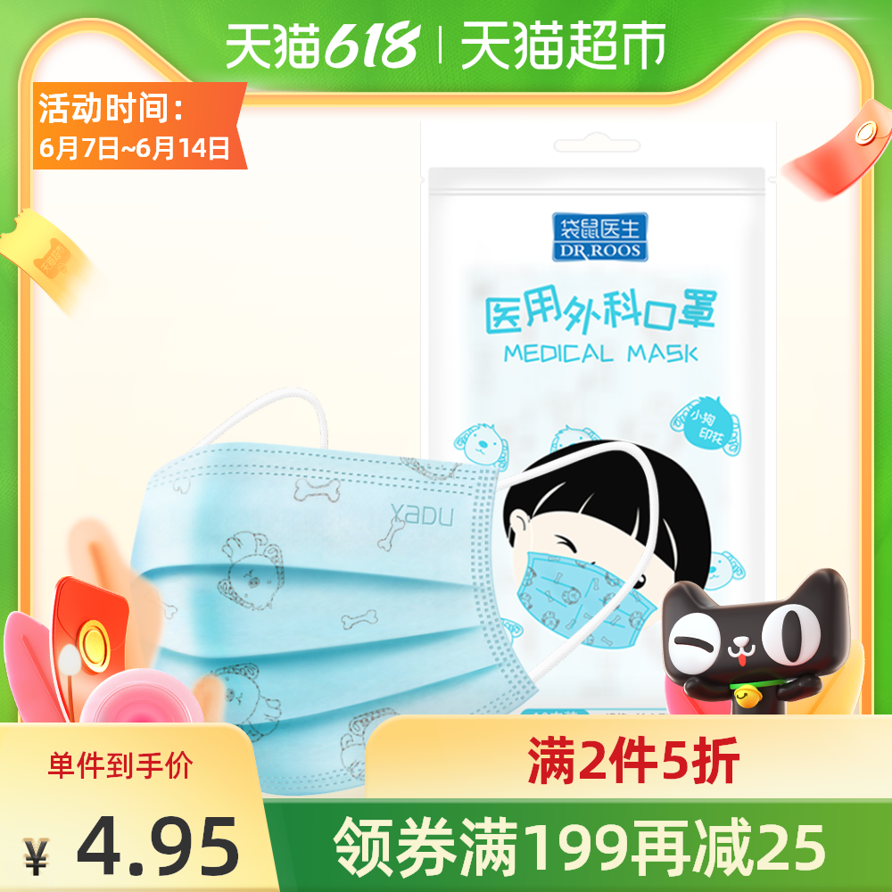 袋鼠醫(yī)生兒童一次性滅菌醫(yī)用外科口罩卡通藍(lán)小狗10支