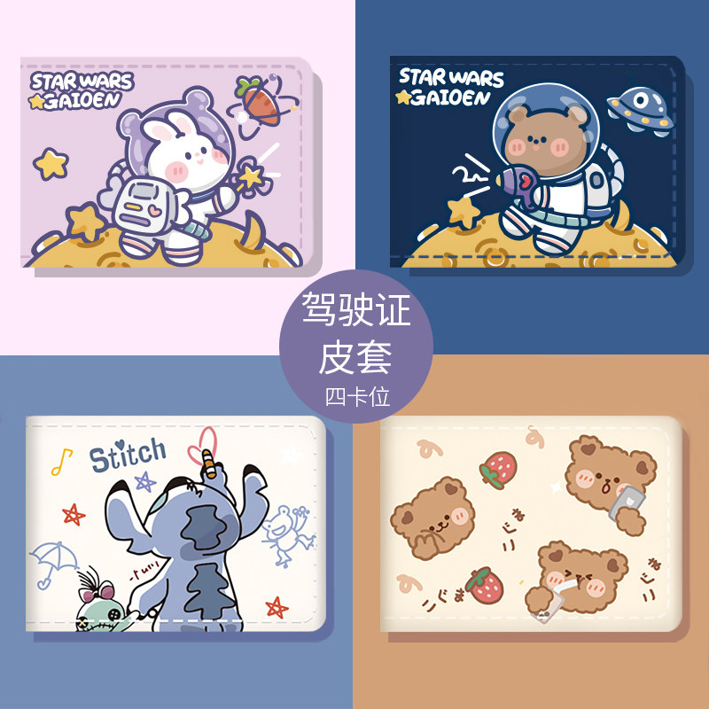 駕駛證皮套女個(gè)性創(chuàng)意機(jī)動(dòng)車行駛證駕照保護(hù)套本一體包男卡通小熊