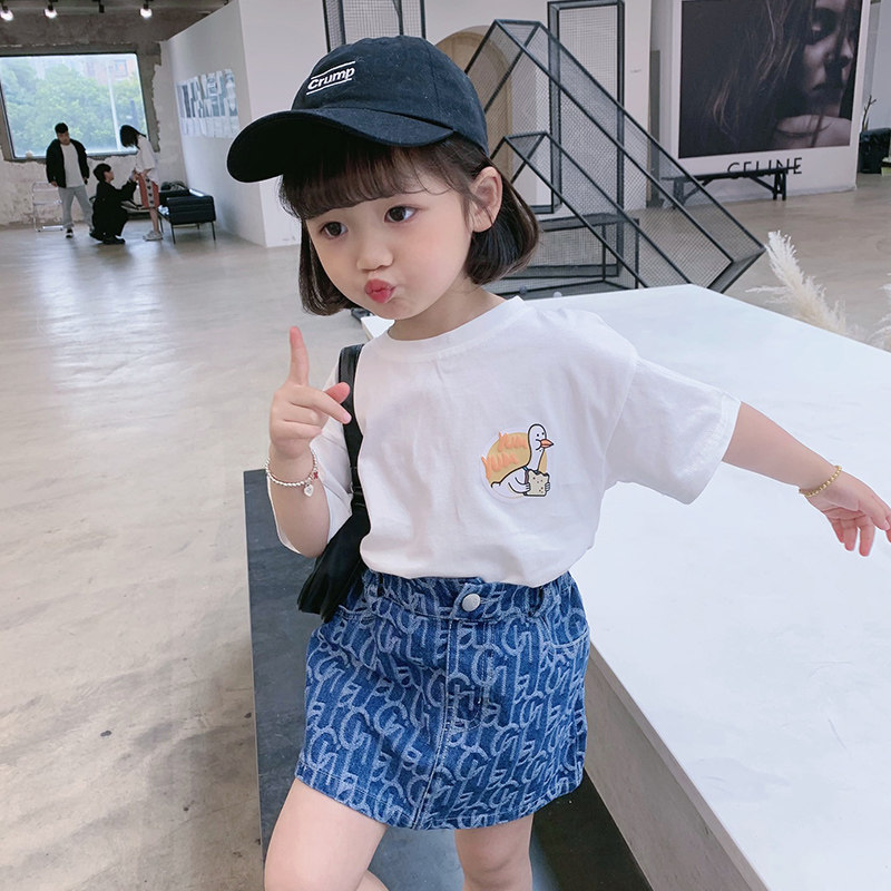 女童卡通白t恤兒童短袖上衣寶寶寬松套頭小童裝小衫2021夏裝新款