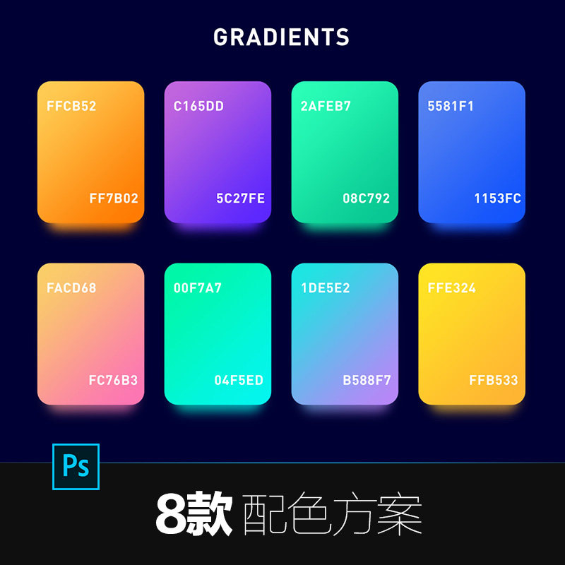 PS漸變色配色合集PSD格式圖片UI網(wǎng)頁設(shè)計配色方案顏色搭配背景