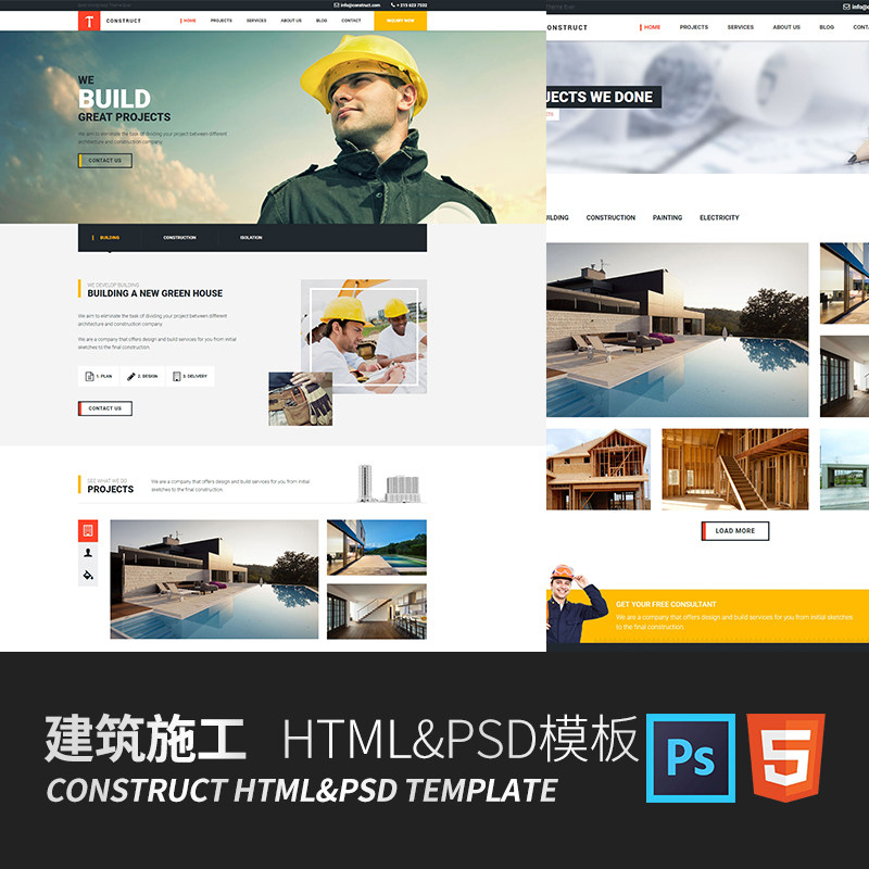 建筑施工工程公司網(wǎng)站HTML模板裝飾企業(yè)官網(wǎng)網(wǎng)頁(yè)P(yáng)SD分層設(shè)計(jì)素材