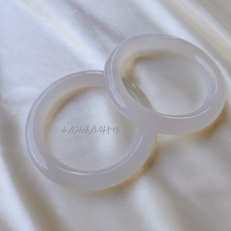 【荔枝凍】山居秋暝團購天然原石開采冰透白瑪瑙玉鐲漢服圓鐲
