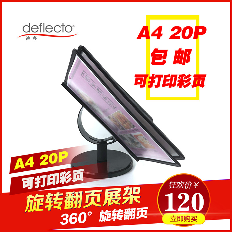 迪多A4 20面翻頁(yè)旋轉(zhuǎn)臺(tái)卡桌面亞克力宣傳展示資料架 傳單架包郵
