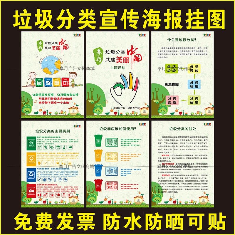 上海市垃圾分類宣傳海報垃圾分類標(biāo)識生活開展垃圾分類墻貼紙畫