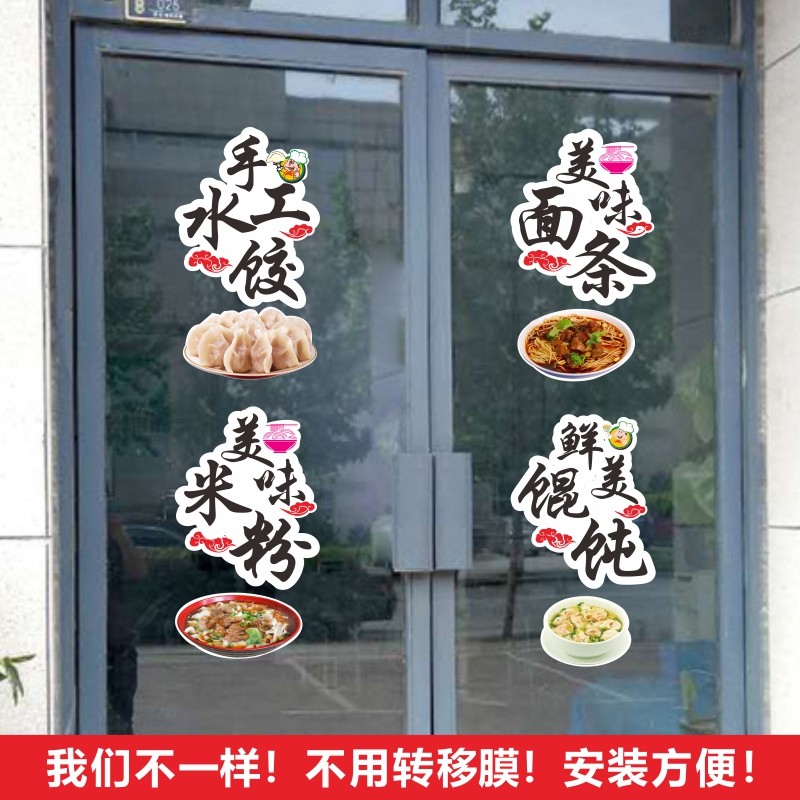 水餃混沌面條面粉快餐店鋪玻璃門櫥窗貼紙宣傳裝飾墻貼廣告貼字