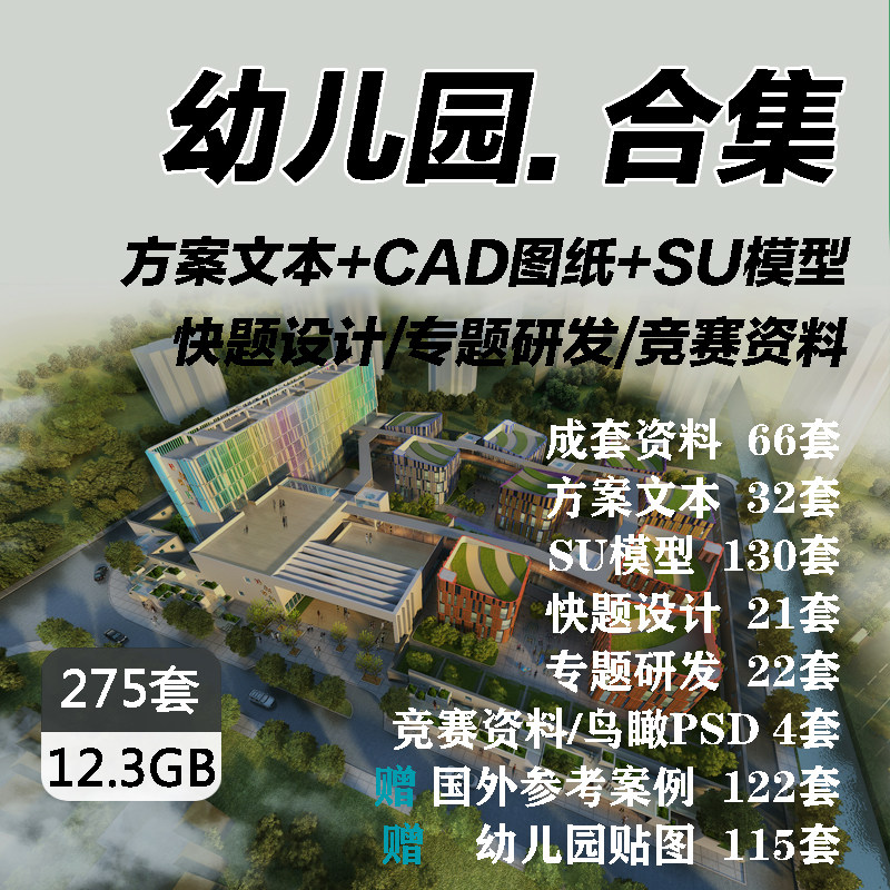 幼兒園建筑設(shè)計規(guī)劃方案配套素材CAD施工圖紙SU模型景觀文本合集